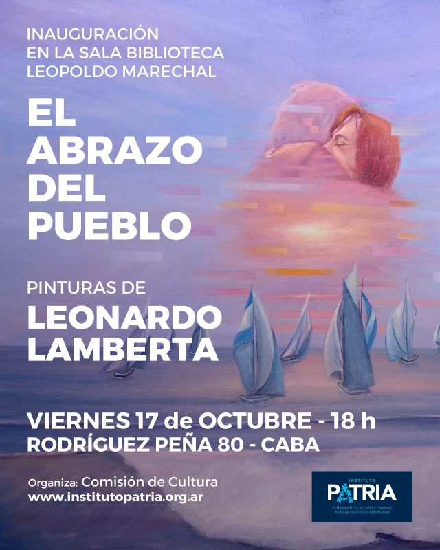 La Comisión de Cultura del Instituto Patria tiene el agrado de invitar a la inauguración de la muestra del artista plástico Leonardo Lamberta. el 17 de octubre a las 18 hs en la Sala Biblioteca «Leopoldo Marechal», Rodríguez Peña 80, CABA.