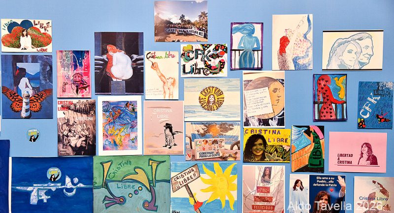 La muestra reúne obras de artistas que, a través del arte correo postal, expresan su apoyo a la libertad de Cristina Fernández de Kirchner.